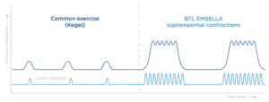 Figure 1. Pelvic floor muscles activation using HIFEM compared to common exercise (e.g. Kegel)