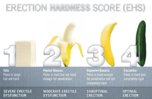 Figure 1. Erection Hardness Score (EHS) as a tool to assess the severity of erectile dysfunction (ED). EHS 1 = severe ED, EHS 2 = moderate-severe ED, EHS 3 = mild-moderate ED, EHS 4 = normal erection.